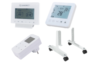 Kaapelit, jalustat ja ohjaimet täydelliseen lämmitysjärjestelmään.