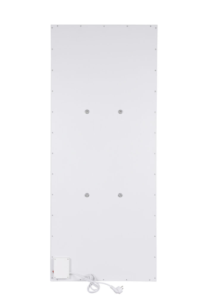 Elegantisti muotoiltu Premium-infrapunalämpöpaneeli. Paneeli on kehyksetön ja siinä on sileät kulmat. Takapuolella on kaksinkertainen eristys, joka vähentää lämpöhäviötä entisestään. Siinä on ainutlaatuinen kiinnityskehys, joka helpottaa paneelin asentamista kattoon tai seinään. Tietenkin siinä on sisäänrakennettu termostaattivastaanotin, joka on yhteensopiva älykkään langattoman termostaatin kanssa. Kaikki tämä tekee IC-Plus-lämpöpaneelista erittäin helppokäyttöisen.