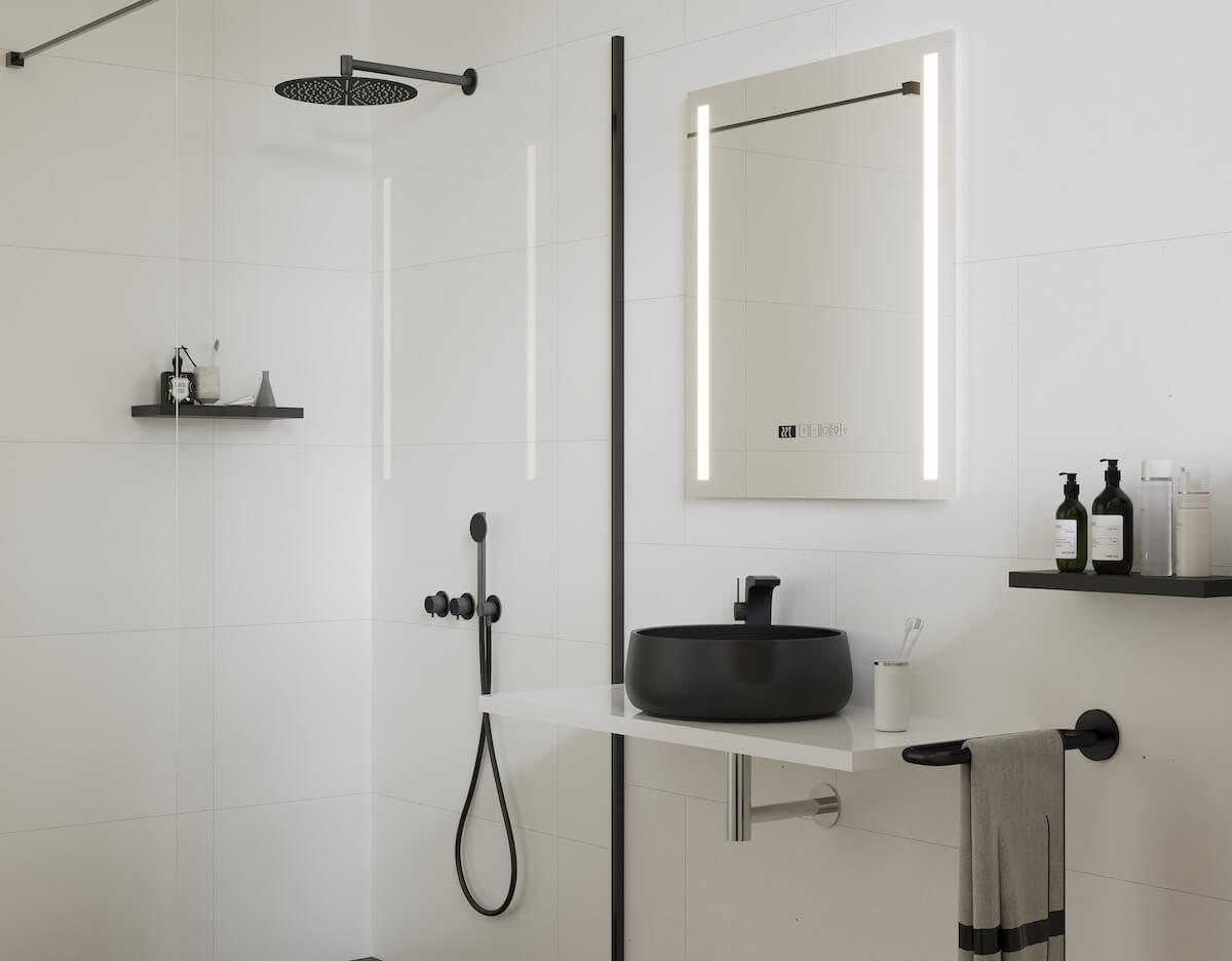 LM-Prossa on moderni kosketusnäyttö peilipinnalla, jolla lämpötilaa ja valaistusta voidaan säätää manuaalisesti. Parasta on, että se tarjoaa lukuisia älykkäitä ominaisuuksia, kun yhdistät sen Sundirect Smart App -sovellukseen ja käytät sitä etänä matkapuhelimellasi.