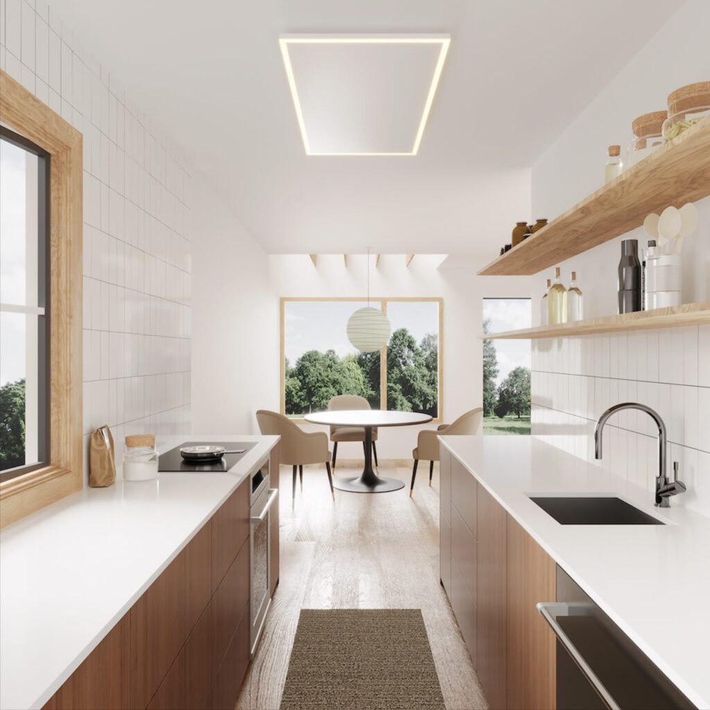 LED-nauha on himmennettävä, ja sen värilämpötilaa voidaan säätää 3000 K:sta 6000 K:iin, jotta se sopii erilaisiin ympäristöihin. Sisäänrakennetun termostaatin ansiosta Lux-Plus-paneeleita voidaan ohjata langattomasti Lux-ohjaimillamme, jotka on suunniteltu ohjaamaan sekä lämmitystä että valaistusta.