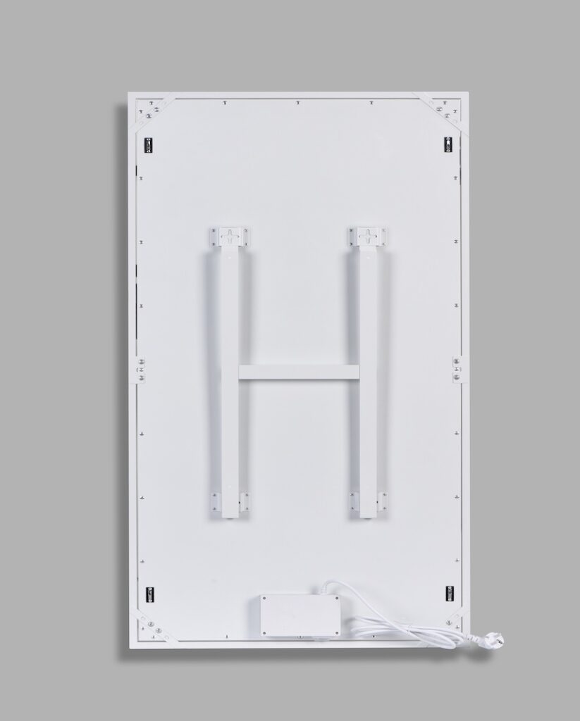 Paneelin ympärillä on tehokas LED-valaistuskehys, joka tarjoaa miellyttävää valoa. Infrapunalämmityspaneelien pintalämpötila on korkea – noin 110–120 astetta lämmityksen ollessa päällä, joten korkealaatuinen ja lämpötilankestävä LED-kehys on välttämätön. Käytämme alumiinipohjaisia LED-valonauhoja, jotka varmistavat hyvän lämmönsiirtokyvyn ja pitkän käyttöiän.
