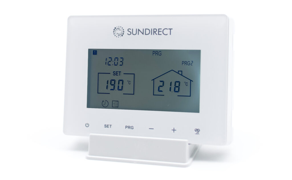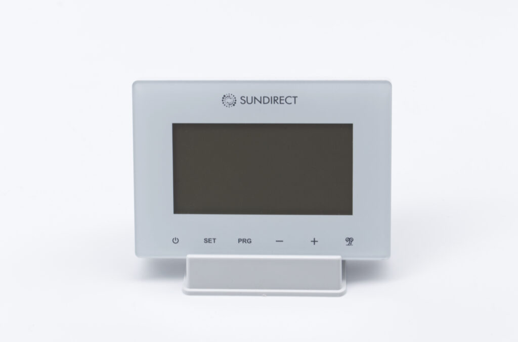 Sundirect Smart2.0 on langaton kaukosäädintermostaatti, joka on erityisesti suunniteltu toimimaan Sundirect plus -infrapunalämmityspaneelien sisäänrakennetun vastaanottimen kanssa. Smart 2.0 -ohjausjärjestelmän avulla voit hallita lämmitystäsi täysin ja säästää energiaa ainutlaatuisten edistyneiden ominaisuuksien avulla.