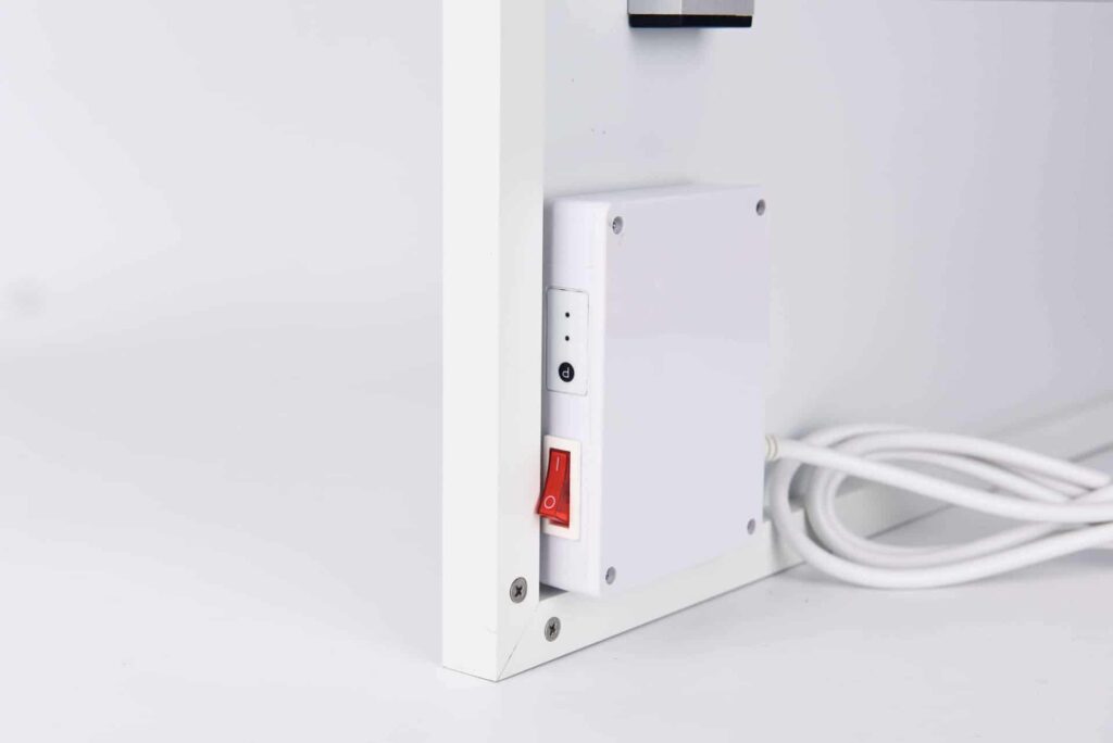 Sisäänrakennetun termostaattivastaanottimen ansiosta paneelia voidaan ohjata langattomasti älykkäillä lämmityksen ohjausjärjestelmillä. Paneelia voi käyttää kolmella tavalla (myydään erikseen). Valitse paristokäyttöinen (AA) ohjain (Smart2.0), verkko-/USB-virtalähteinen ohjain (Smart2.0Pro) tai pistoketermostaatti (SmartPlug). Sekä Smart2.0Pro että SmartPlug ovat ohjattavissa sovelluksen ja Alexan kautta. Lisätietoja älykkäästä termostaatistamme on lämmityspaneelien lisävarustekategoriassa.